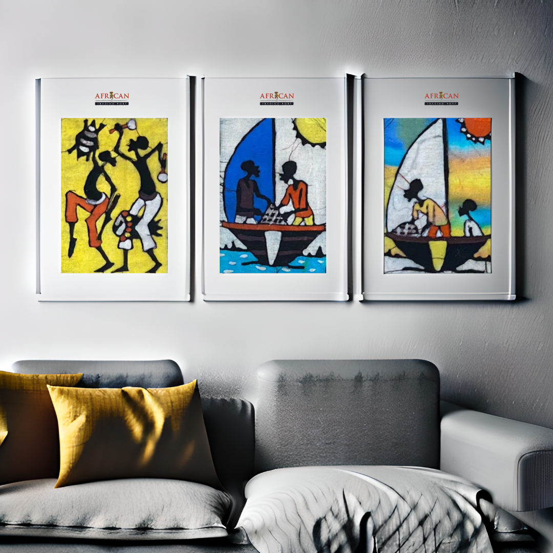 African wax painting or African batik painting is a unique craft that traces its roots to Indonesian origins. It combines the use of wax-resist techniques and native Indonesian techniques to create beautiful, vibrant prints used for clothing in West and Central Africa.