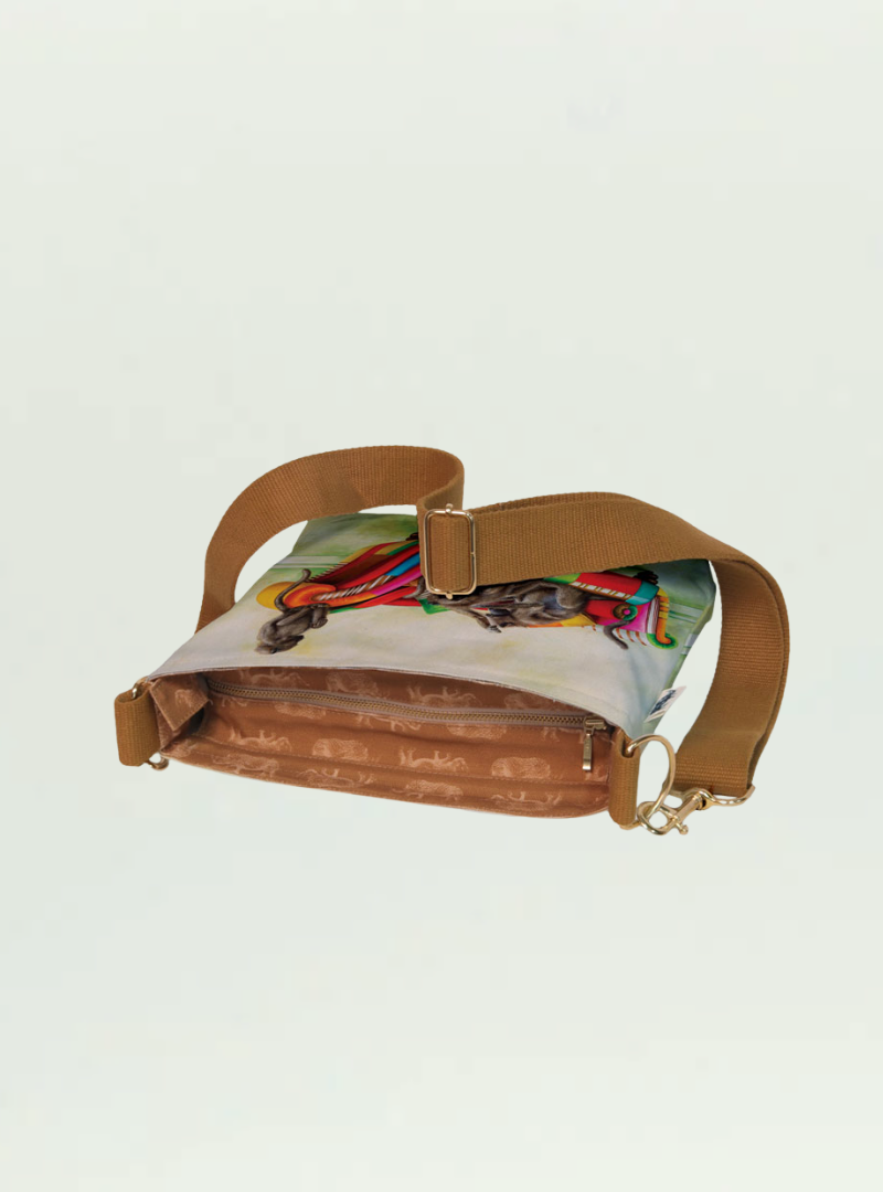 Crossbody sling bag with waterproof lining and detachable strap.