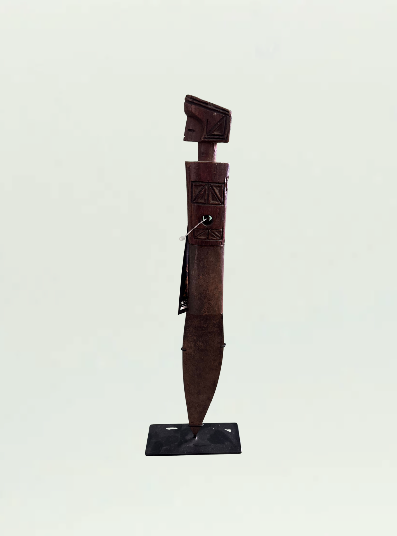 A Chokwe knife with finery carved head, torso and decorations. Collected in Angola in 1990s.
