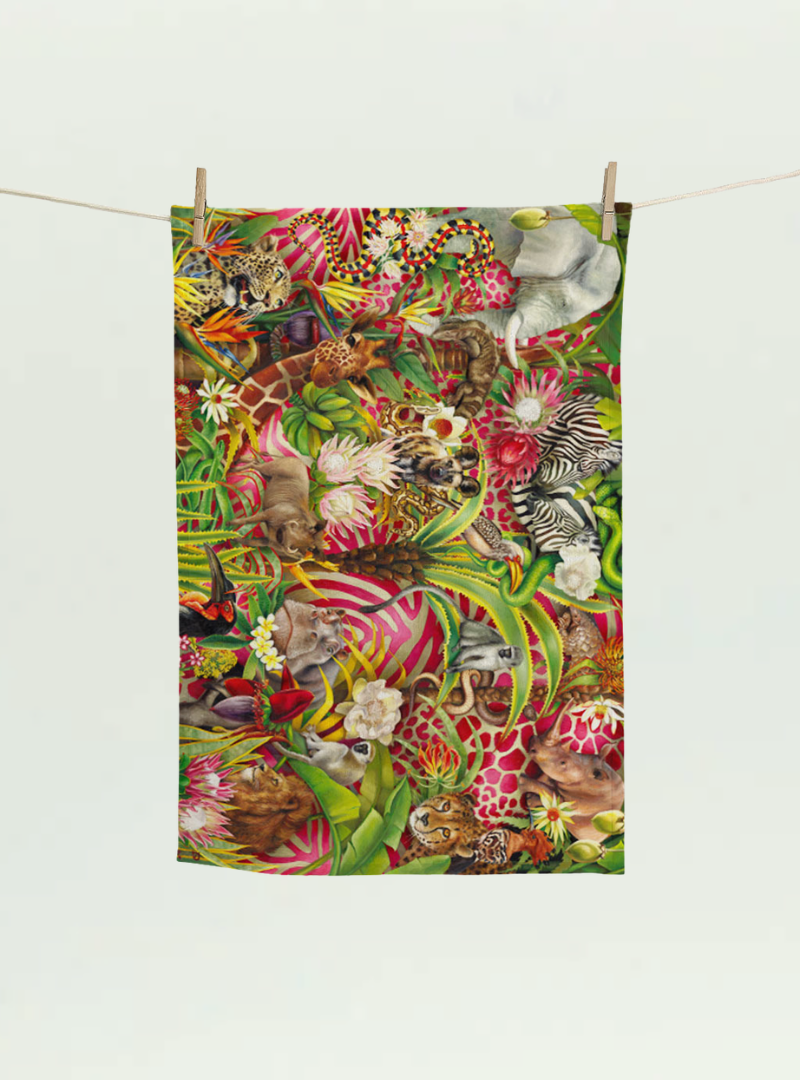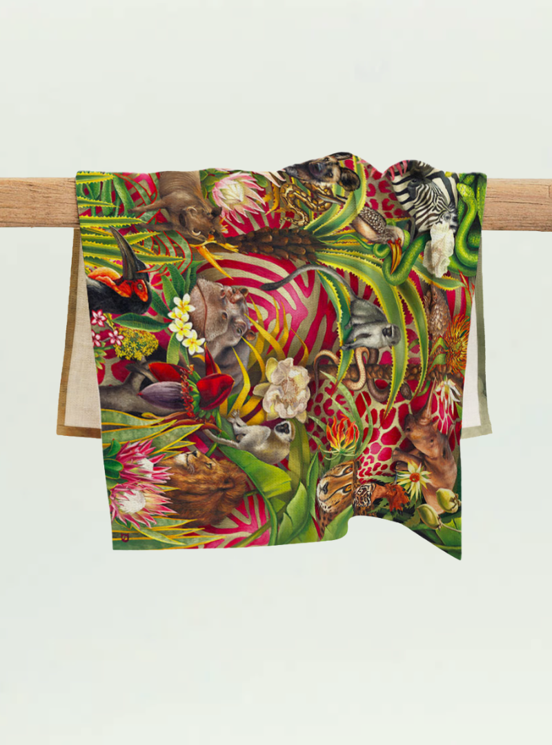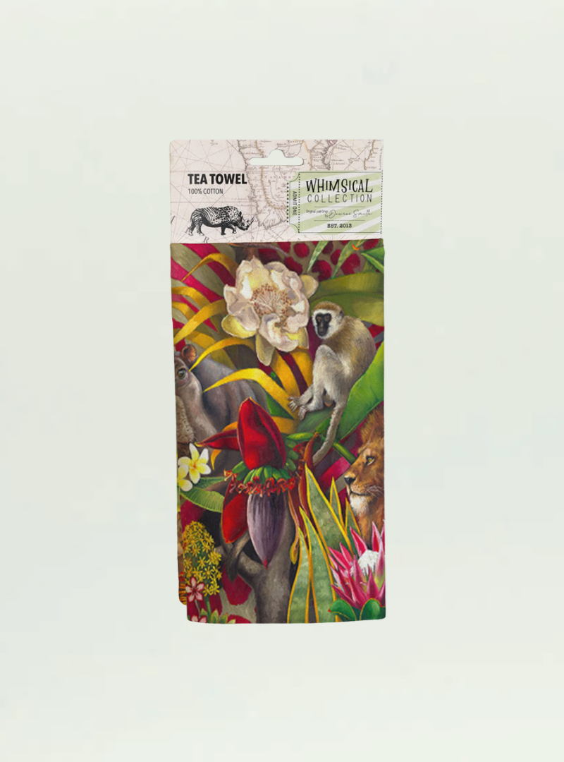 This tea towel is 100% cotton and has a hang tag in one corner.