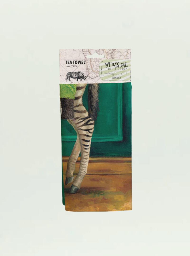This tea towel is 100% cotton and has a hang tag in one corner.